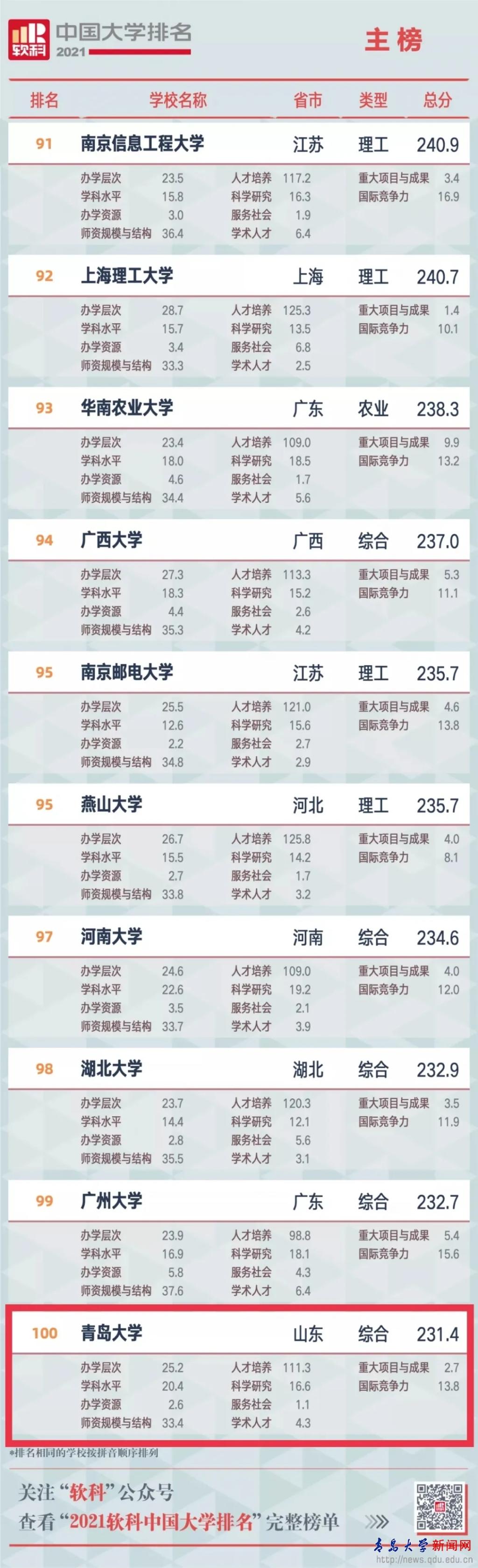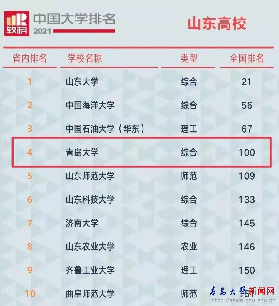 “2021軟科中國大學排名”發(fā)布,青島大學首次躋身百強!
