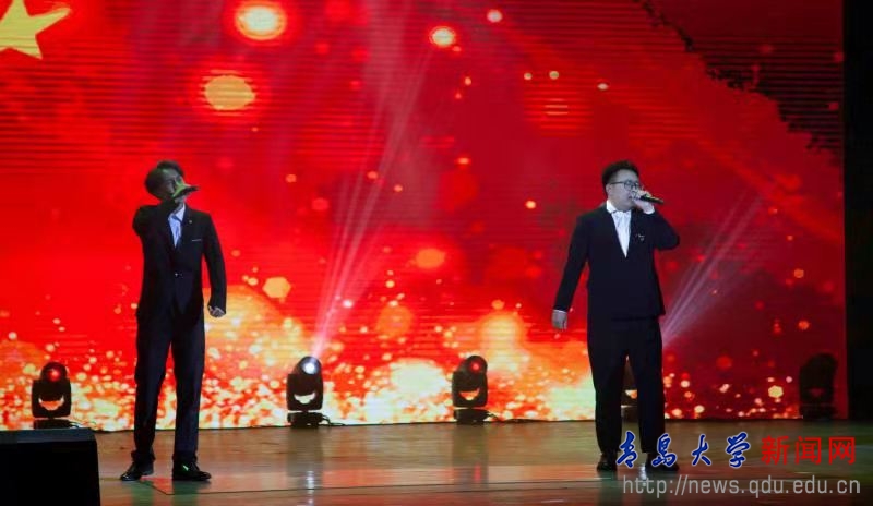 晚會以外語學院夢想合唱團帶來的《唱支山歌給黨聽》開場,接著,商學院的同學們帶來歌曲聯唱《炎黃子孫》,歌聲鏗鏘,飽含對祖國深沉的愛,點燃了本場晚會的氛圍。