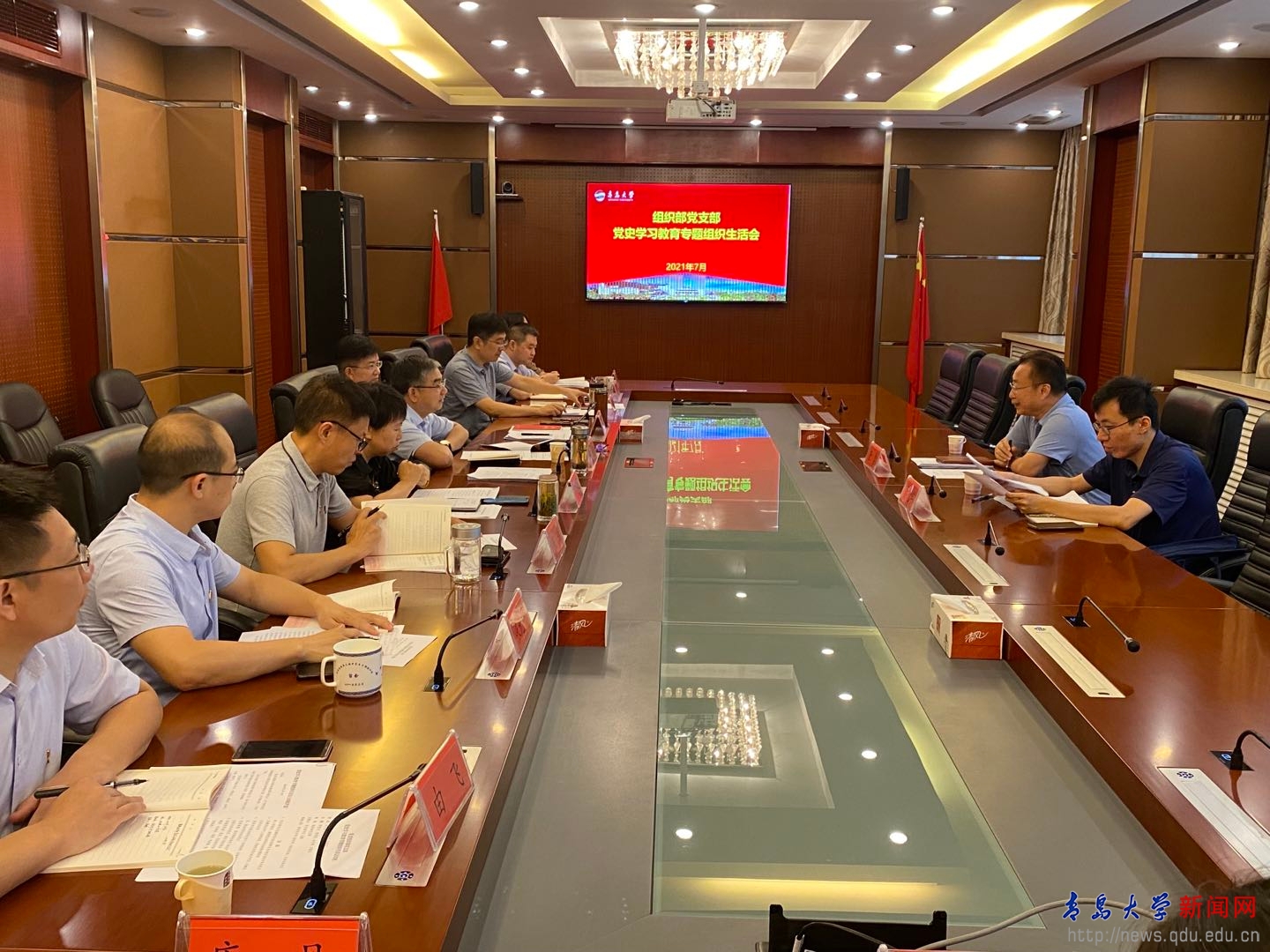 新聞網訊 7月29日上午,組織部黨支部在辦公樓第五會議室召開黨史學習教育專題組織生活會,校黨委書記胡金焱,黨委常委、組織部部長徐龍飛以普通黨員身份參加會議。省委黨史學習教育第二巡回指導組副組長唐勇、成員秦冠宇到會指導。