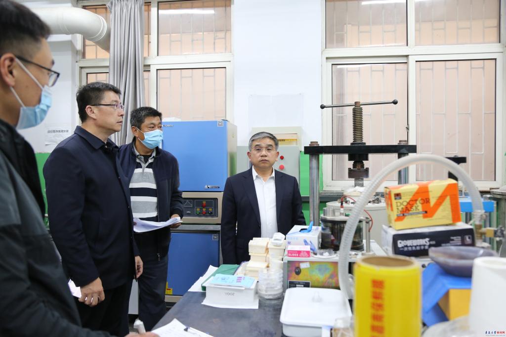 胡金焱一行重點(diǎn)檢查了醫(yī)學(xué)部藥學(xué)院的藥化實(shí)驗(yàn)室、生藥與天然藥化實(shí)驗(yàn)室,物理科學(xué)學(xué)院的博觀樓科研實(shí)驗(yàn)室,生物多糖纖維成形與生態(tài)紡織國家重點(diǎn)實(shí)驗(yàn)室,以及生物醫(yī)用材料與工程研究院、高性能固體電解質(zhì)與固態(tài)鋰電池工程研究中心、能源與環(huán)境材料研究院、非織造材料與產(chǎn)業(yè)用紡織品創(chuàng)新研究院、電動(dòng)汽車智能化動(dòng)力集成技術(shù)國家地方聯(lián)合工程技術(shù)中心等科研機(jī)構(gòu)的實(shí)驗(yàn)室。
