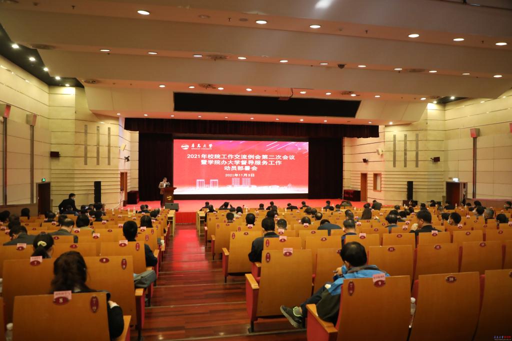 新聞網(wǎng)訊11月3日上午,學(xué)校2021年校院工作交流例會(huì)第二次會(huì)議暨學(xué)院辦大學(xué)督導(dǎo)服務(wù)工作動(dòng)員部署會(huì)在浮山校區(qū)國際學(xué)術(shù)交流中心博學(xué)廳舉行。校黨委書記胡金焱現(xiàn)場點(diǎn)評并講話。會(huì)議由校長夏東偉主持。校領(lǐng)導(dǎo)杜方波、李軍、肖江南、孔偉金、吳世珍、徐龍飛出席會(huì)議。