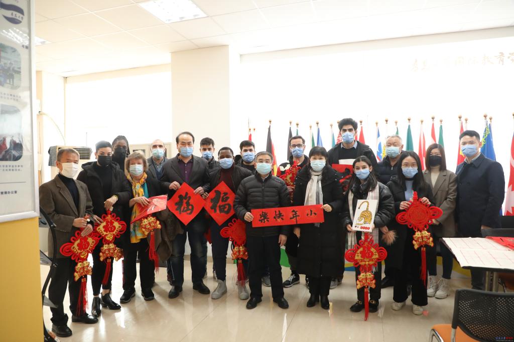 胡金焱一行前往國際教育學院看望慰問了在校外籍教師和留學生,為外籍師生送去了新春祝福和問候,并現場發放了節日特色紀念品。胡金焱詳細詢問了他們的生活和學習情況,他鼓勵留學生切身感受和體驗中國傳統文化,度過一個平安祥和的中國虎年。胡金焱一行還走訪慰問了春節期間堅守工作崗位的國際教育學院值班人員。