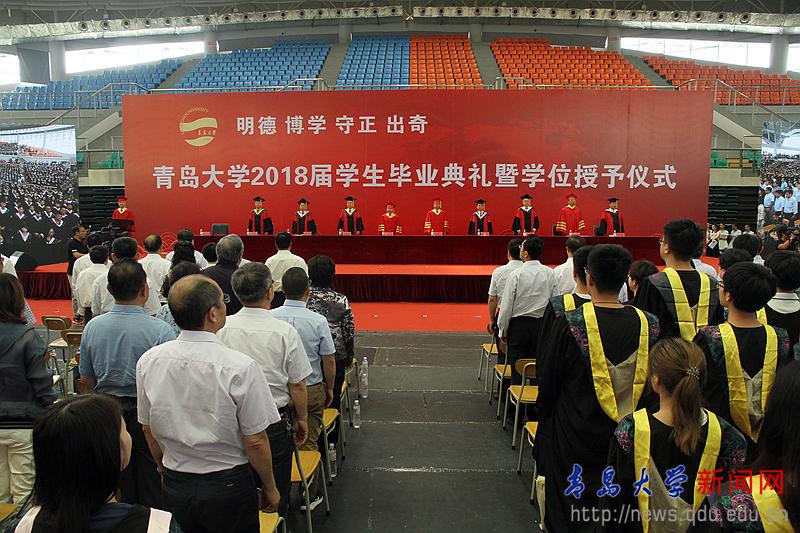 畢業典禮上,校學位評定委員會副主席、校黨委常委、副校長于永明宣讀了《青島大學2018年夏季關于授予博士、碩士學位及學士學位的決議》。校黨委常委、副校長邵彬宣讀了《青島大學關于表彰2018屆優秀博士、碩士、學士學位論文獲獎得者的決定》。校黨委副書記杜方波宣讀了《青島大學關于表彰2018屆優秀畢業生的決定》,胡金焱、儀垂杰分別為優秀畢業生代表和優秀論文獲得者代表頒發了證書。
