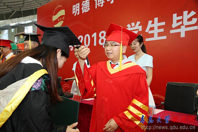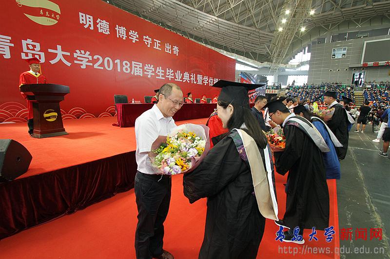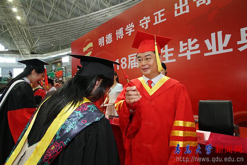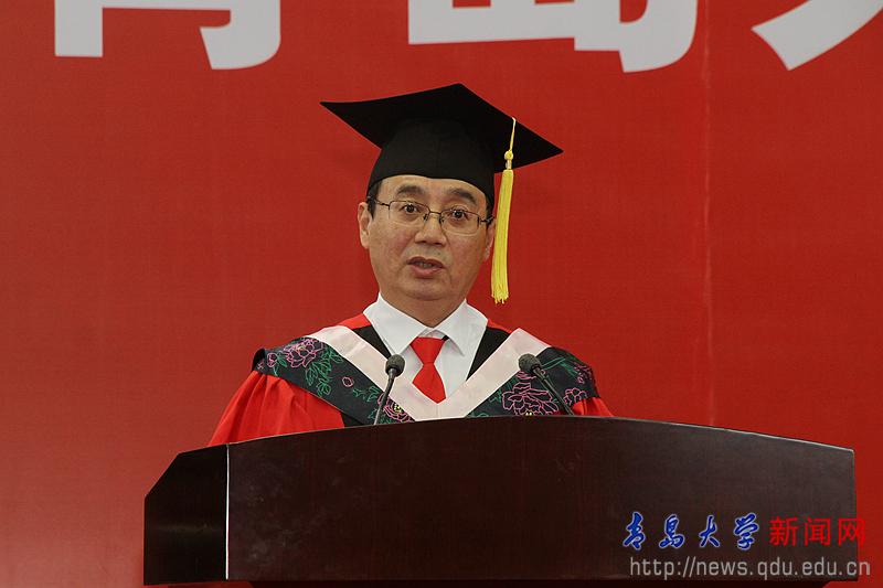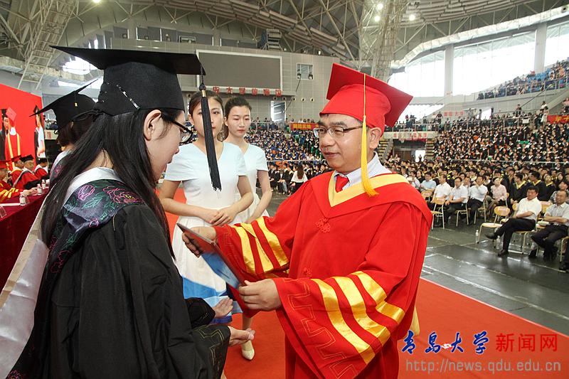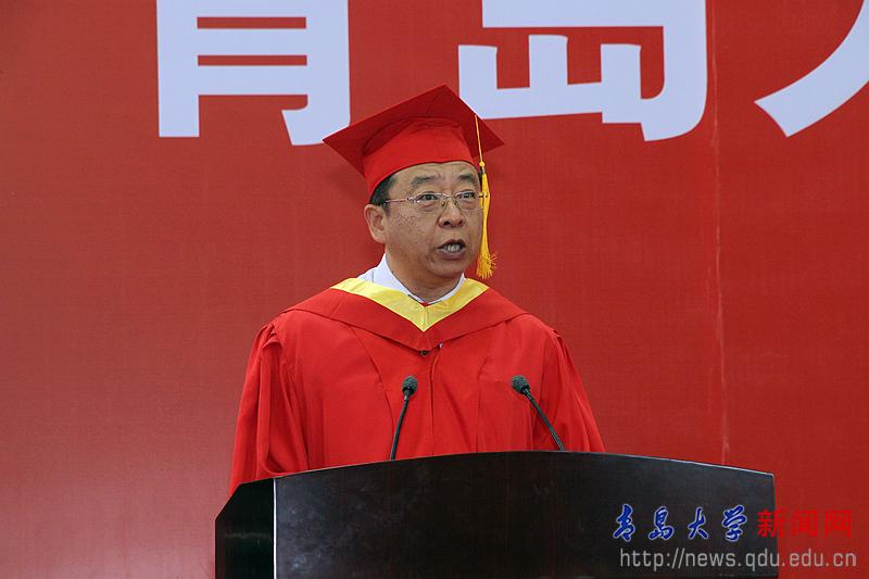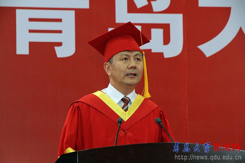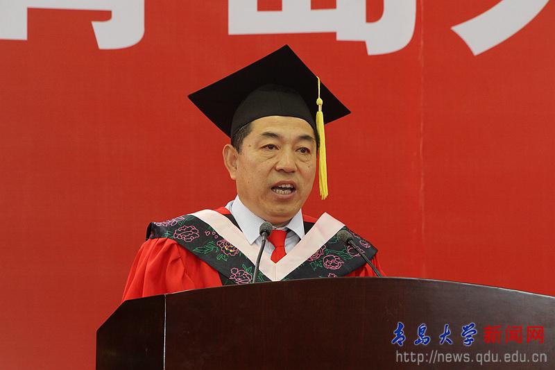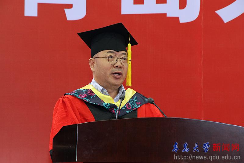 校長夏東偉在熱情洋溢的講話中,向圓滿完成學業的畢業生和受到表彰的各位同學表示崇高的敬意,向為同學們成長成才付出心血和汗水的家長、老師和社會各界朋友致以衷心的感謝。他說,當年,同學們懷著對未來的憧憬、對夢想的渴望,從四面八方來到青島大學。你們勤勉不倦、學有所成,無論是在教學樓里埋頭苦讀,還是在實驗室里專注研究,還是在體育場上奮力拼搏,美麗的青大校園,留下了你們追逐夢想的腳步,記錄了你們潛移默化的成長。他分享了生命科學學院劉啟君同學和上合組織青島峰會志愿者的事跡,并為同學們多彩的人生和無悔的選擇點贊。