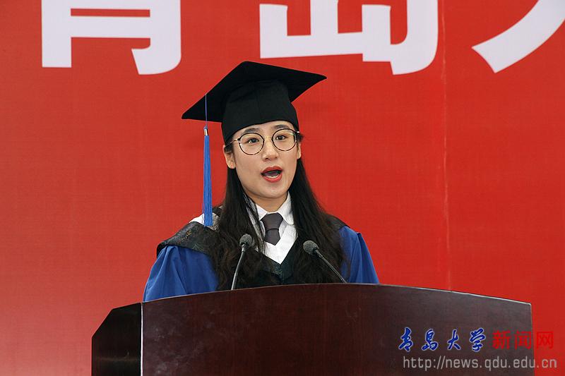 畢業生代表、醫學部2010級臨床醫學專業(八年制)學生周欣蓓在發言中表示,將懷揣神圣使命,銘記囑托,用夢想、激情與汗水遠赴八方,盡展青大才俊風采。