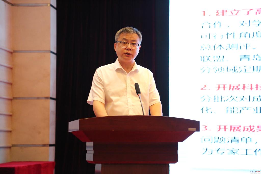 活動主辦和承辦單位山東產業技術研究院(青島)執行院長趙宇波、青島協同創新研究院執行院長王臣業,分別作了青島大學海豚計劃的階段成果和首批科技成果的評估情況和報告,展示了青島大學與專業服務機構合作持續推進產學研合作相關進展。