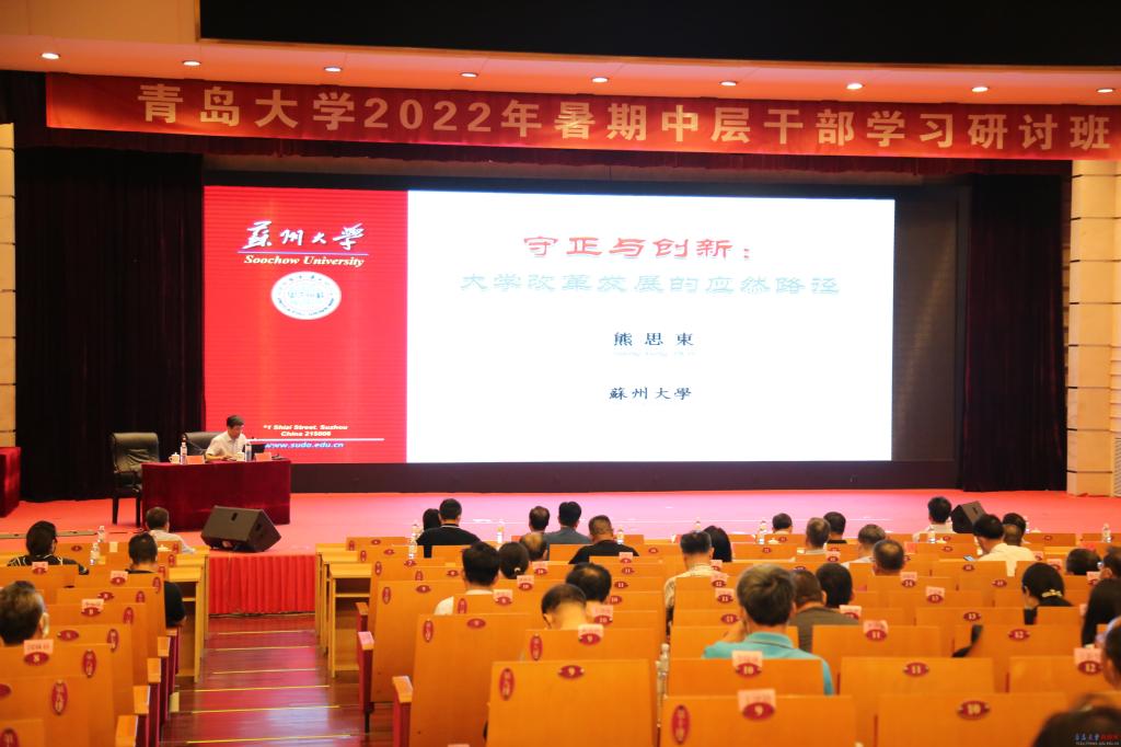 新聞網(wǎng)訊 8月25日上午,我校邀請(qǐng)?zhí)K州大學(xué)原校長(zhǎng)熊思東教授為我校2022年暑期中層干部學(xué)習(xí)研討班做了題為《守正與創(chuàng)新:大學(xué)改革發(fā)展的應(yīng)然路徑》的專(zhuān)題報(bào)告。報(bào)告會(huì)在國(guó)際學(xué)術(shù)交流中心博學(xué)廳舉行,校黨委副書(shū)記杜方波主持會(huì)議。