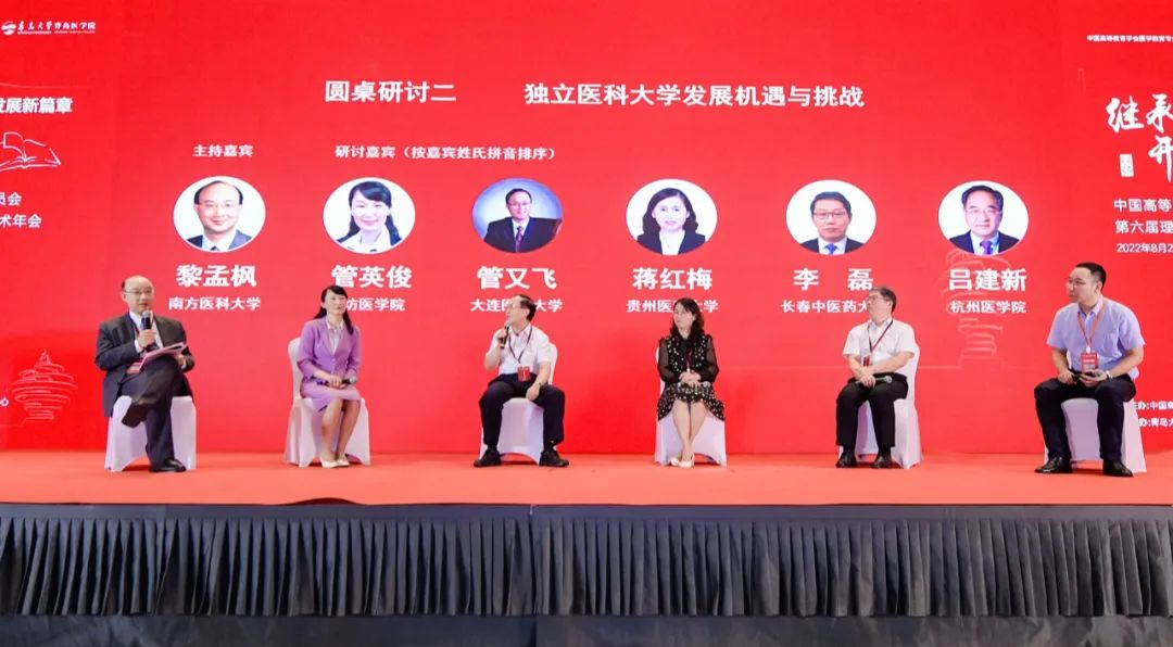 南方醫科大學校長黎孟楓就“獨立醫科大學發展機遇與挑戰”問題主持召開了圓桌研討,濰坊醫學院院長管英俊、大連醫科大學副校長管又飛、貴州醫科大學副校長蔣紅梅、長春中醫藥大學副校長李磊、杭州醫學院黨委書記呂建新圍繞相關問題進行了深入探討。