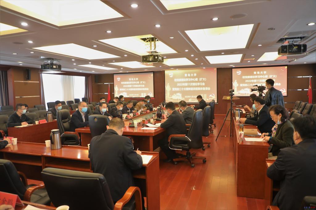 新聞網訊 11月10日上午,學校在辦公樓407會議室召開黨委理論學習中心組(擴大)2022年第11次理論學習會暨黨的二十大精神宣講團集體備課會。校黨委書記胡金焱主持并作專題宣講導學培訓報告。校領導夏東偉、杜方波、汪黎明、李軍、于永明、范玉斌、劉彩云、肖江南、吳世珍、徐龍飛參加學習。