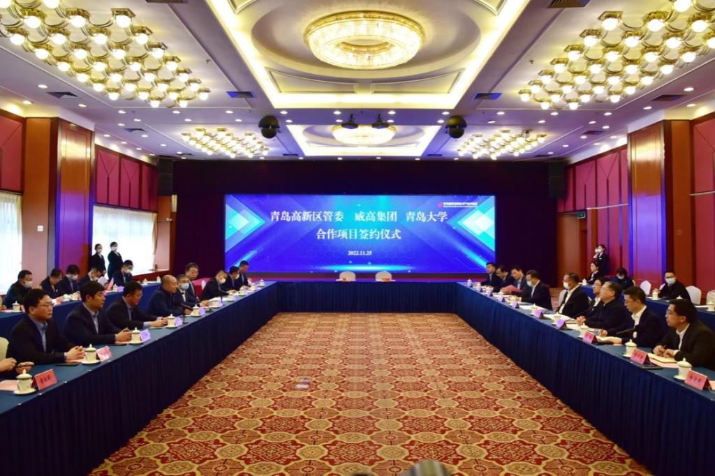 儀式上,于永明與威高集團有限公司董事、威高生基醫療集團董事長連小明簽署《青島大學與威高集團有限公司合作框架協議》和《山東威高基金會捐贈青島大學教育發展基金會捐贈協議》。雙方將共建青島大學威高研究院,依托我校在科技研發、人才培養、學科建設、醫療健康等方面的優質資源和威高集團在成果轉化、應用推廣、市場拓展等方面的獨特優勢,著重在生物醫用材料、醫療器械耗材、醫學檢驗、康復醫療、智慧能源、醫療信息化等領域開展合作,構建“產學研用”一體化的產業體系,引領帶動青島市生物醫藥及醫療器械產業高質量發展,共同打造校地企融合發展服務青島的新樣板。此外,值我校合并辦學30周年之際,威高集團將在2022年至2024年分兩期,每年向我校捐資1000萬元人民幣、共計2000萬元人民幣,用于支持學校事業發展。