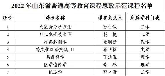 新聞網訊 近日,山東省教育廳公布了2022年省級課程思政示范項目名單,我校8個項目獲批立項,其中普通高等教育課程思政教學研究示范中心一個,普通本科教育課程思政示范課程7門。