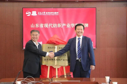 儀式上,夏東偉、劉子斌共同為山東省現代紡織產業學院揭牌。劉彩云、劉子斌代表雙方簽署“魯泰紡織—青島大學“獎教·助學”百萬獎勵基金計劃合作協議”和“魯泰紡織獎教金”捐贈協議。