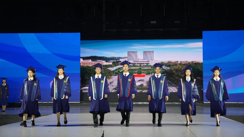 新聞網訊 5月17日,青島大學專屬學位服發布會在體育館舉行。黨委常委、副校長孔偉金出席發布會。