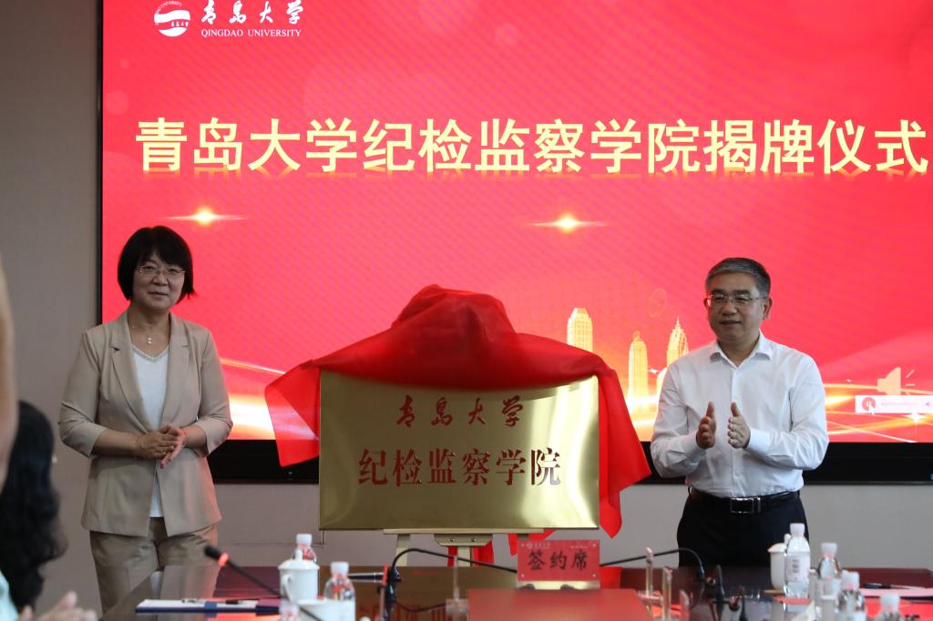 儀式上,夏東偉代表青島大學與省紀檢監察干部培訓學院簽署戰略合作協議,范玉斌代表青島大學同青島、東營、煙臺、威海、日照等五市紀委監委主要負責同志簽署合作共建協議。山東省紀委監委和青島大學主要負責同志為青島大學紀檢監察學院揭牌。