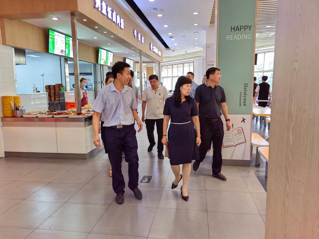 劉彩云一行走訪了學(xué)校部分餐廳和教學(xué)樓,重點查看了仁園餐廳和浩園餐廳暑期裝修改造工作、加工場所衛(wèi)生、餐廳用具消毒、食材驗收以及安全生產(chǎn)等情況;檢查了博文樓等教學(xué)樓的教學(xué)設(shè)施設(shè)備、環(huán)境衛(wèi)生、直飲水機用水安全等。劉彩云強調(diào),要高度重視開學(xué)準(zhǔn)備工作,后勤要管理好、監(jiān)督好各項服務(wù)保障,要以師生需求為工作出發(fā)點,把后勤工作做細(xì)做實,為新學(xué)期師生營造溫馨、安全、優(yōu)質(zhì)的學(xué)習(xí)和生活環(huán)境。