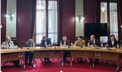 在烏拉圭共和國大學訪問期間,兩校舉行了烏拉圭共和國大學孔子學院2023年度理事會,胡金焱和烏拉圭共和國大學校長阿里姆(Rodrigo Arim)等中外方理事與代表參加會議。會議聽取了孔子學院中外方院長關于2022年工作總結和2023年工作計劃匯報,審議通過孔子學院2022年度決算和2023年度預算。會議還就下一步兩校在繼續加強孔子學院合作建設的基礎上開展人文交流和科研合作等事宜進行了探討。