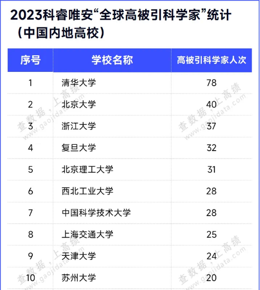 從中國內地高校入選數統計(按第一機構)來看,我校入選5人次,位居第54位。