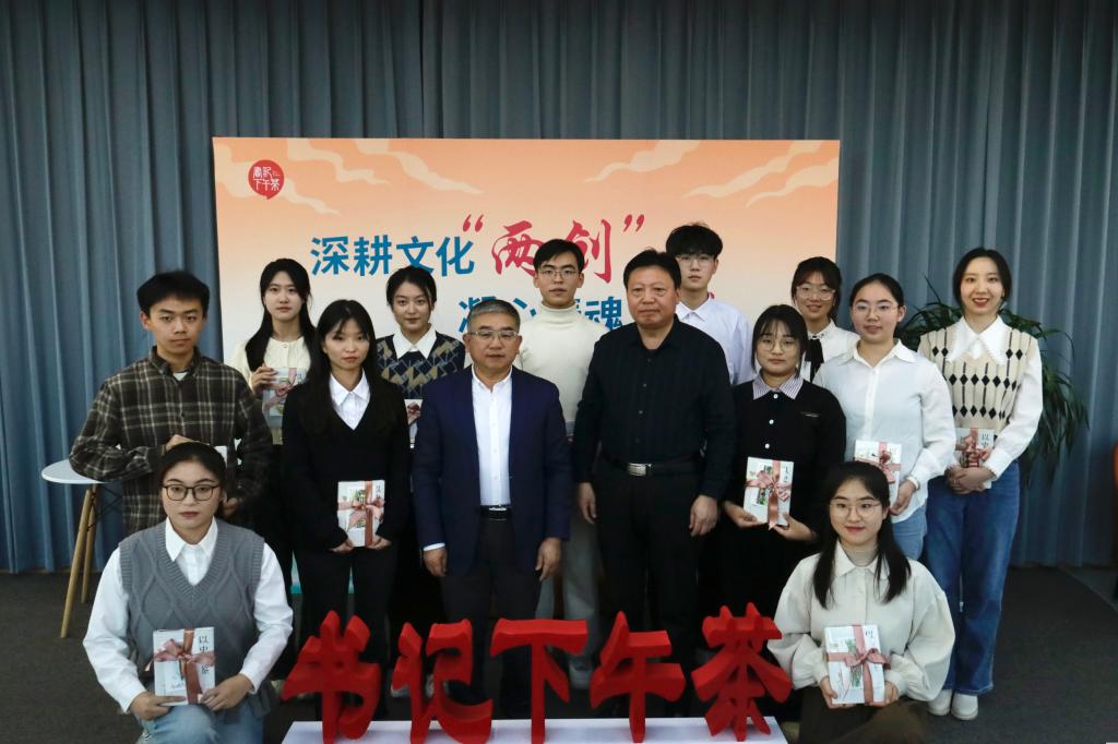 新聞網(wǎng)訊 12月7日下午,學(xué)校舉辦主題為“深耕文化‘兩創(chuàng)’ 凝心鑄魂育人”的第六期“書記下午茶”。校黨委書記胡金焱與12位來自不同專業(yè)不同教育階段的學(xué)生代表共飲熱茶,共話文化擔(dān)當(dāng)。黨委常委、副校長陳濤陪同出席。