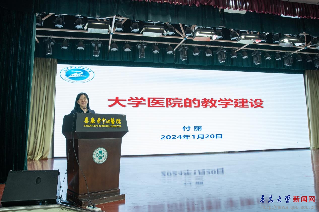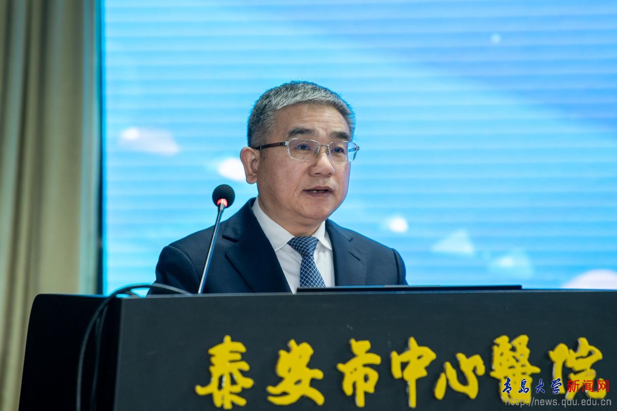 倪慶賓對此次會議的召開表示熱烈祝賀。他表示,泰安市中心醫院成為青島大學附屬醫院后,在學科建設、教學科研等方面已取得豐碩成果;此次研討會的召開,充分體現了青島大學的信任和鼓勵,將更好地促進醫教研協同發展;泰安市中心醫院將以此次會議為契機,致力于“學院型附屬醫院”建設,助力青大醫學發展,在社會責任、文化傳承、知識創新方面作出貢獻。