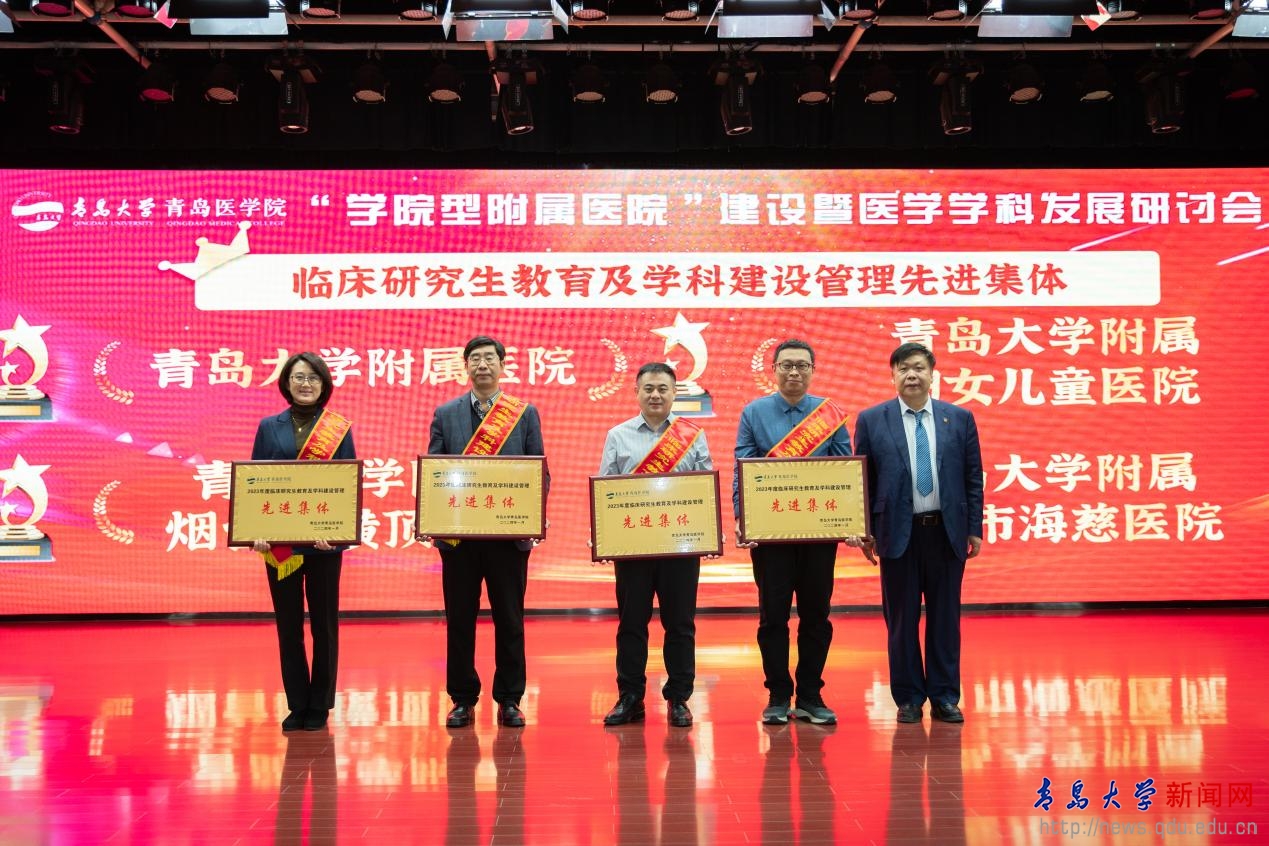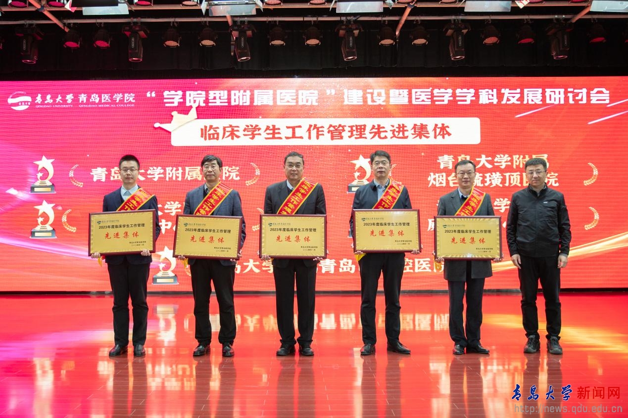 醫學部黨委書記、青島醫學院院長蔣光峰宣讀附屬醫院表彰決定。隨后舉行了隆重的頒獎儀式,為在2023年科教工作表現突出的各附屬醫院有關集體和個人頒獎。