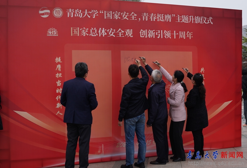 黨委學生工作部、團委聯合政治與公共管理學院于4月15日7時在金家嶺校區圖文中心前廣場舉行“國家安全 青春挺膺”主題升旗儀式。政治與公共管理學院丁金光教授從專業角度對“國家安全”進行了解讀,并以《堅持以政治安全為根本》為題,從我國維護政治安全面臨的復雜形勢、提升維護政治安全能力和水平以及大學生維護國家安全的途徑等三個方面進行了講解。2022級社會工作專業研究生季韜作為退役學生代表,分享了自己的軍旅經歷,并向同學們發出堅守國家安全信念的倡議。儀式最后,在場全體師生在宣傳展板上簽字承諾,將堅決擁護黨的領導,嚴守國家法律,捍衛國家安全,絕不從事任何危害國家安全的活動。