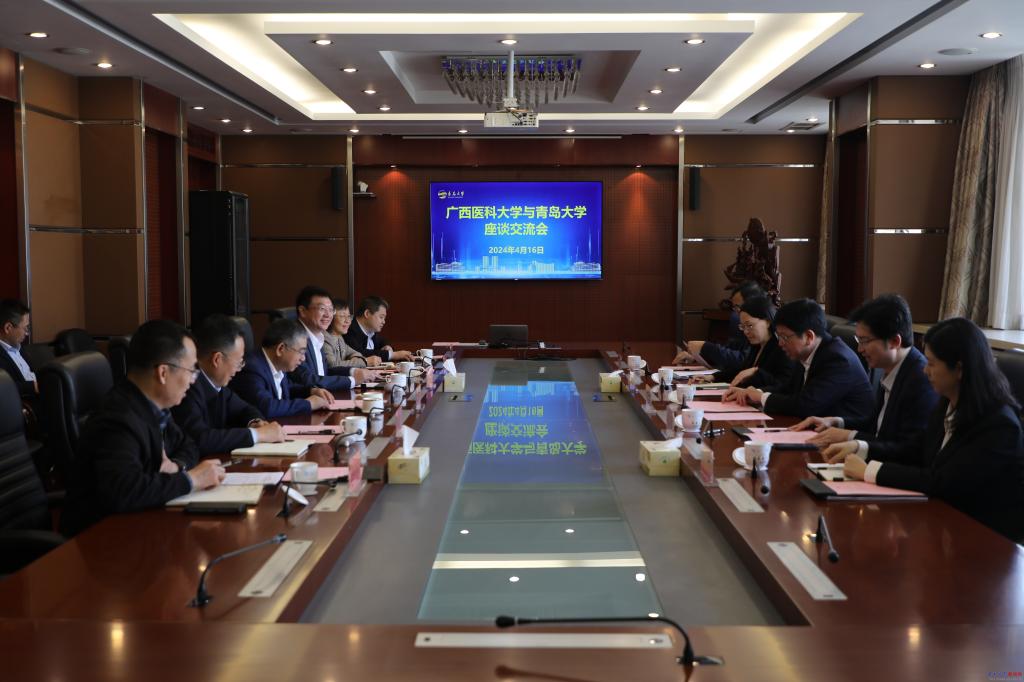 黃照權(quán)首先對(duì)青島大學(xué)取得的成績(jī)表示祝賀,并介紹了廣西醫(yī)科大學(xué)相關(guān)情況。他表示,青島大學(xué)辦學(xué)目標(biāo)定位清晰,發(fā)展勢(shì)頭良好,特別是近年來(lái)在人才培養(yǎng)、學(xué)科建設(shè)、科學(xué)研究等方面實(shí)現(xiàn)了跨越式發(fā)展。他希望雙方以此次座談交流為契機(jī),進(jìn)一步學(xué)習(xí)借鑒優(yōu)秀辦學(xué)經(jīng)驗(yàn),密切交流合作,推動(dòng)兩校教育事業(yè)共同發(fā)展。