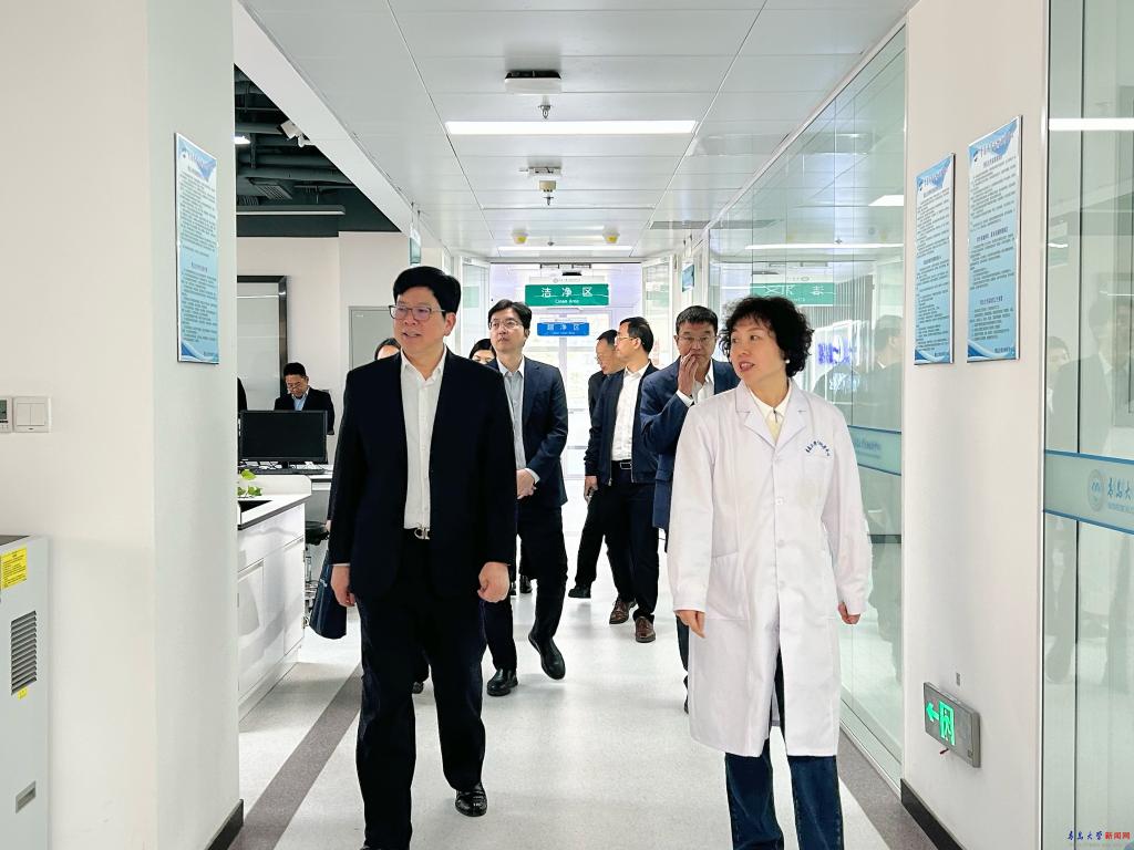 會(huì)后,黃照權(quán)一行對(duì)分析測(cè)試中心、生物醫(yī)學(xué)中心、腫瘤精準(zhǔn)醫(yī)學(xué)研究院進(jìn)行了實(shí)地調(diào)研。