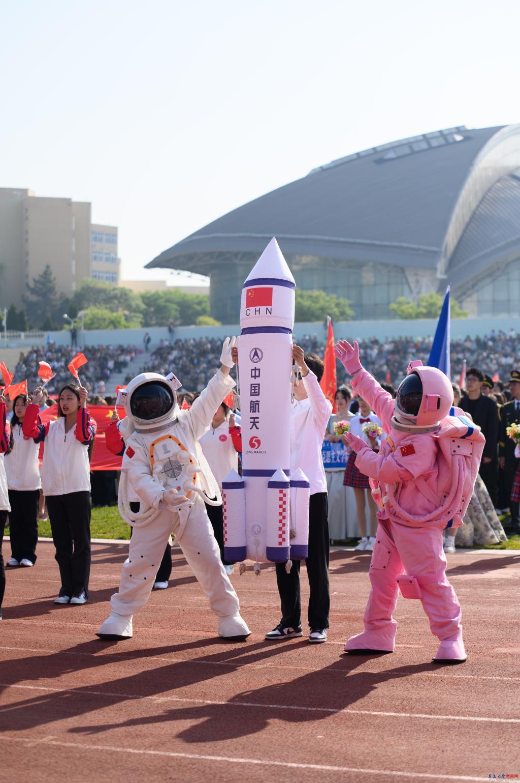 新聞網訊 5月9日上午,青島大學2024年體育運動會在浮山校區中心體育場開幕,校領導胡金焱、魏志強、肖江南、胡欽曉、陳濤、李榮貴、劉恩賢、何燕、徐大連、李建波、牛海濤、吳世珍出席開幕式。各職能部門、各院系師生代表在主席臺和觀禮臺觀看開幕式。