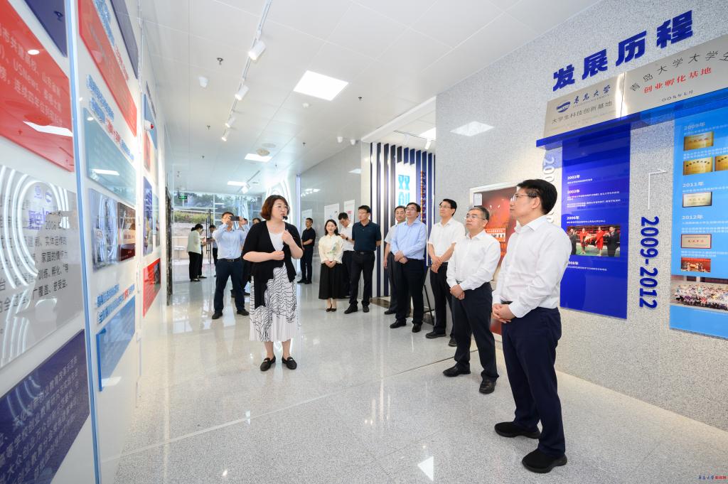 鄧云鋒一行先后考察了學校產業技術研究院、生態紡織省部共建協同創新中心及慧創空間(創新創業學院),聽取了相關情況匯報,并就青島大學加強優勢學科建設、推進科研成果轉化、強化學生就業創業指導服務,加快實現學校事業高質量發展提出要求。