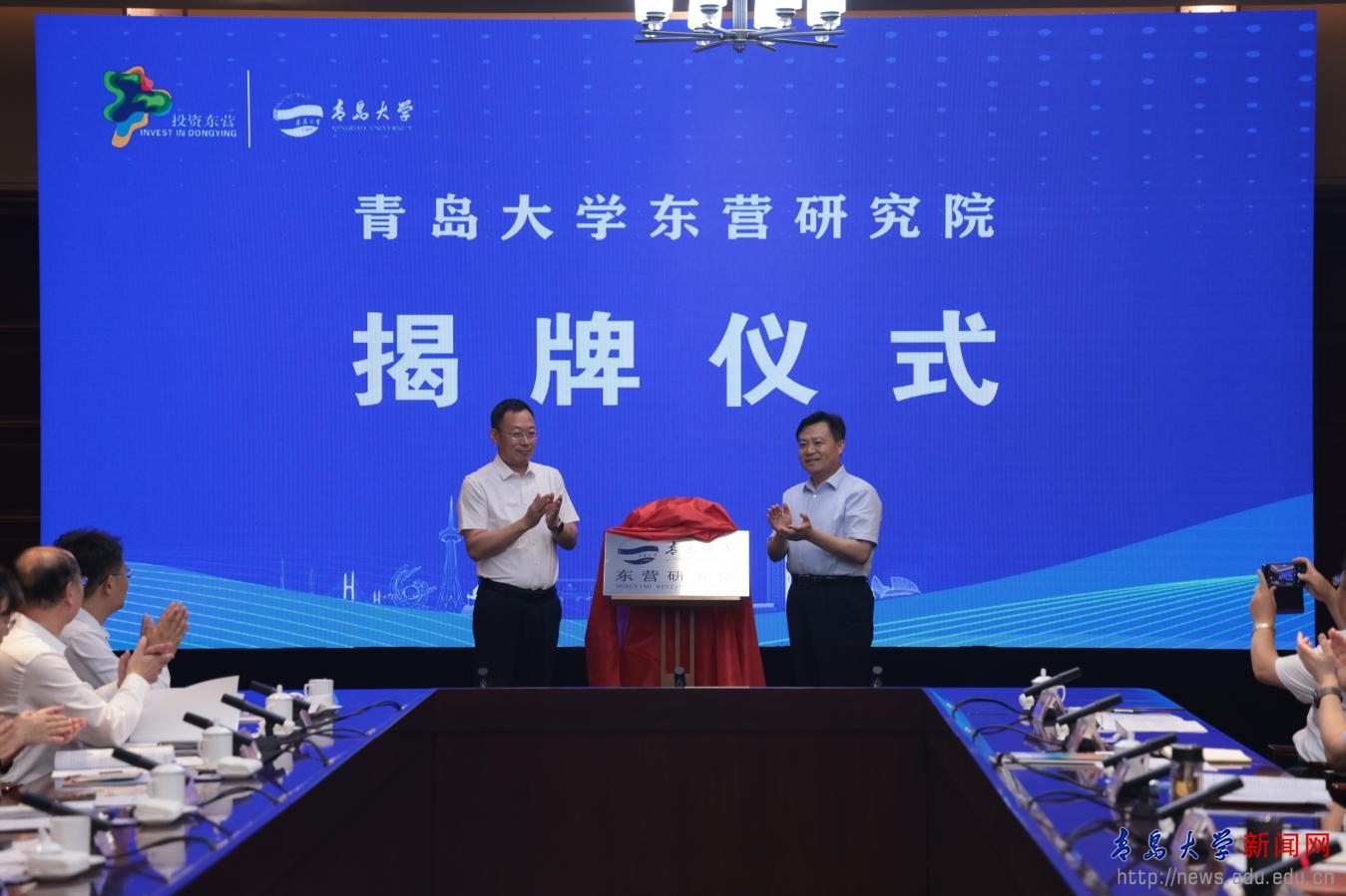 何憲卓和劉恩賢共同為青島大學(xué)東營研究院揭牌。