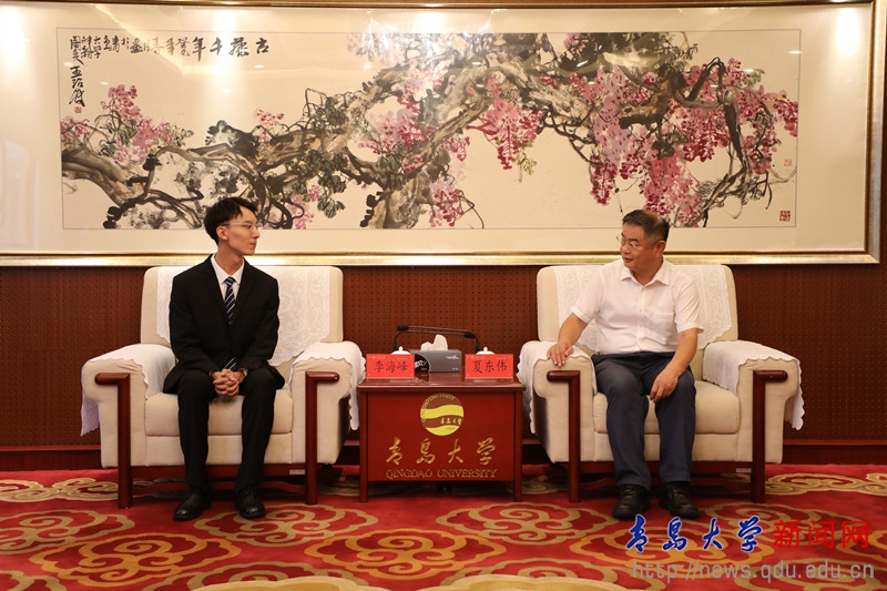新聞網訊 8月21日下午,校長夏東偉在辦公樓204接待室接見我校參加全國學聯第二十七次代表大會代表李海峰同學,并同他親切會談。