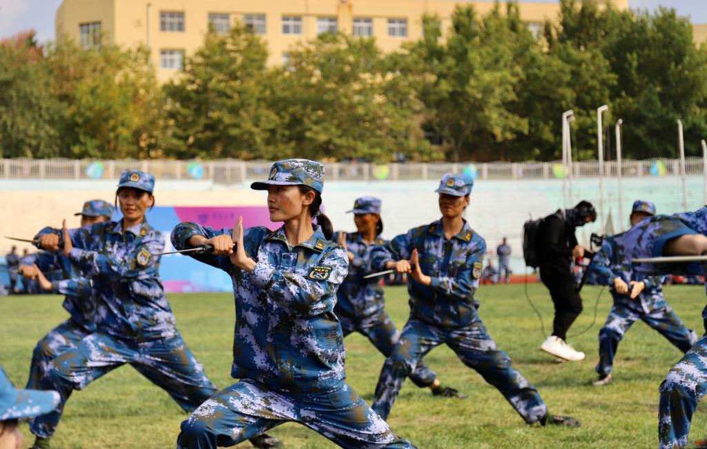 愿以寸心寄華夏,且將歲月贈山河。2020級學生軍訓成果匯報在嘹亮的分列式進行曲中,由新生組成的25個軍訓方隊邁著整齊而堅定的步伐走過主席臺,他們軍容整肅、口號嘹亮,彰顯了新生自強不息、立志報國的壯志豪情;內(nèi)務(wù)整理及緊急集合、女子匕首格斗術(shù)、擒敵拳、戰(zhàn)術(shù)和戰(zhàn)地救護等訓練課目的演示,精彩地體現(xiàn)了軍訓塑造的良好風貌,贏得了現(xiàn)場觀眾的陣陣掌聲。