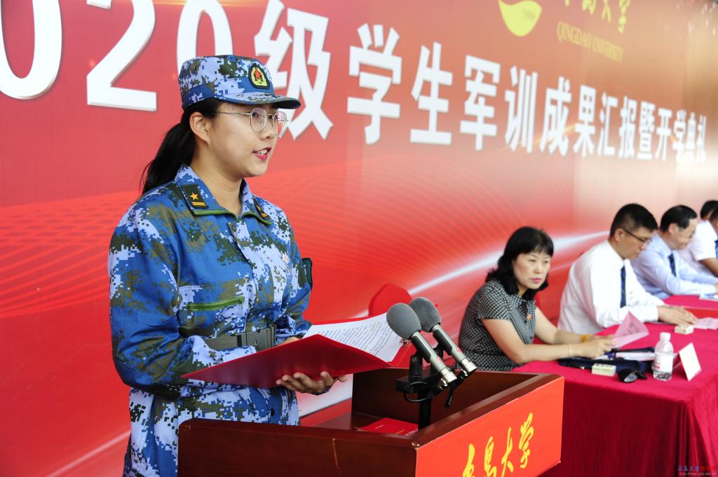 軍訓工作領(lǐng)導小組組長,黨委常委、副校長于紅波宣讀了《青島大學關(guān)于表彰2020級學生軍事訓練先進集體及先進個人的通報》,并對先進集體及先進個人進行了表彰。