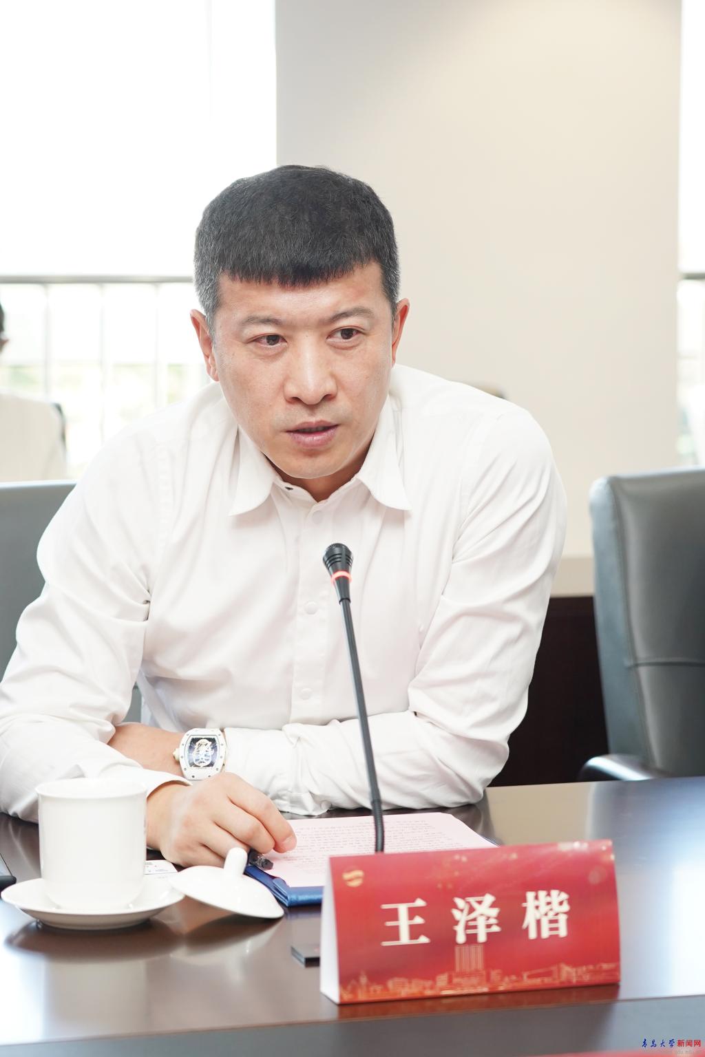 胡金焱向王澤楷、高青、張萬明一行到訪學校以及長期以來給予學校的支持與幫助表示感謝,他表示,青島大學高度重視與黃海制藥、華賽伯曼醫學、萬明賽伯藥業的交流與合作。學校的醫學教育起點最早,可追溯到創辦于1909年的青島特別高等專門學堂,具有扎實的學科基礎與科研實力,此次戰略合作的開展,搭建起產學研深度融合的平臺。將進一步激發醫藥產業創新活力,深度促進醫藥產業健康發展,雙方在人才培養、醫藥研發等領域都具有良好的合作前景,更有共同的合作意向。期待各方發揮各自優勢,緊密溝通、深化合作,共同服務國家區域需求,推動科技創新、學科建設、人才培養等工作高質量發展,共同攜手為青島市醫療產業、醫藥行業、醫學學科做出更大貢獻。