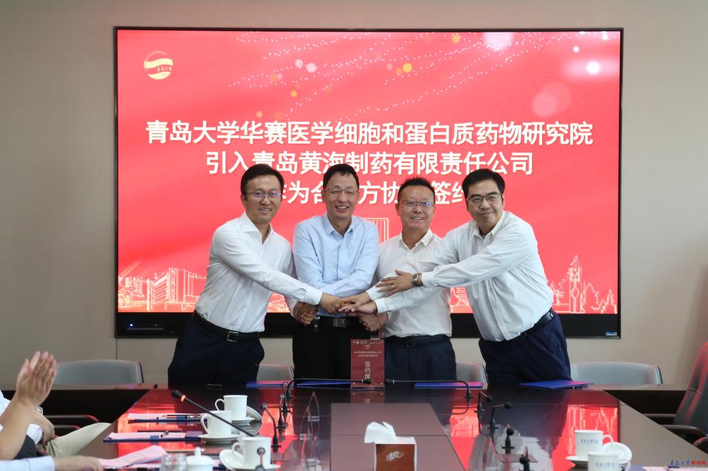 作為戰略合作協議的具體落實,各合作板塊負責人分別簽署了《青島黃海制藥有限責任公司-青島大學教育發展基金會捐贈協議》《青島大學華賽醫學細胞和蛋白質藥物研究院引入青島黃海制藥有限責任公司作為合作方協議》《青島大學-青島黃海制藥有限責任公司本科實習教學基地協議》《青島大學-青島黃海制藥有限責任公司研究生聯合培養基地協議》。