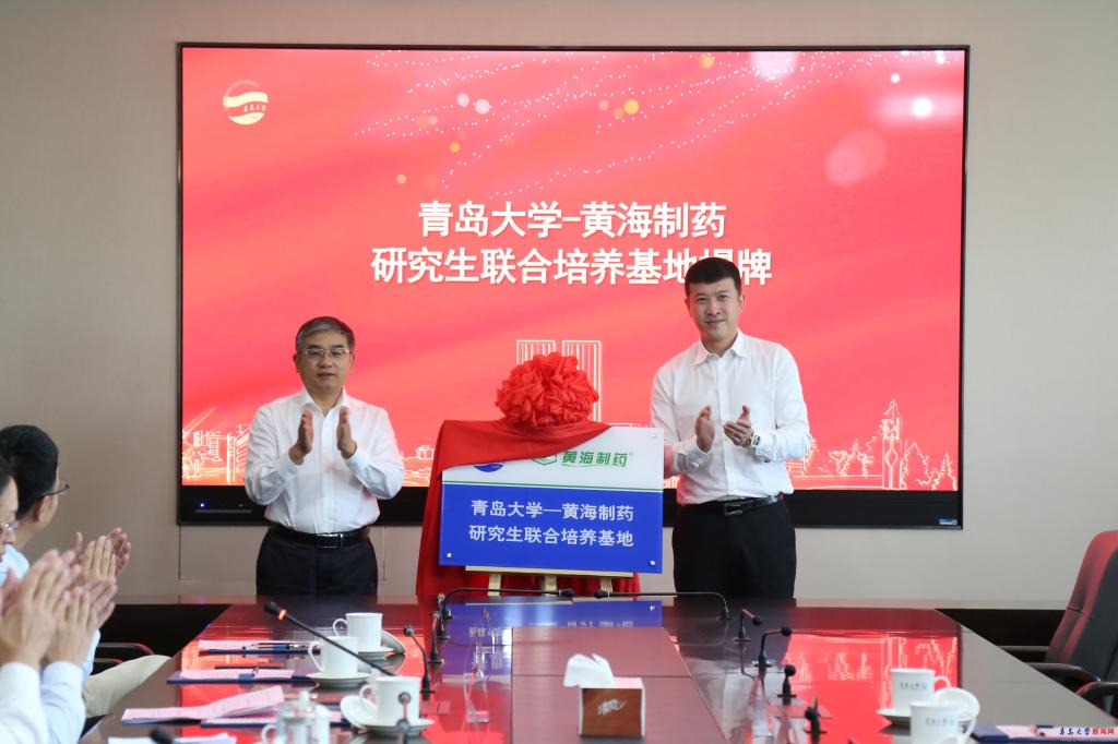 儀式上,胡金焱為劉鳳杰頒發了捐贈證書和捐贈紀念物。胡金焱和王澤楷共同為“青島大學-黃海制藥本科實習教學基地協議”、“青島大學-黃海制藥研究生聯合培養基地”揭牌。