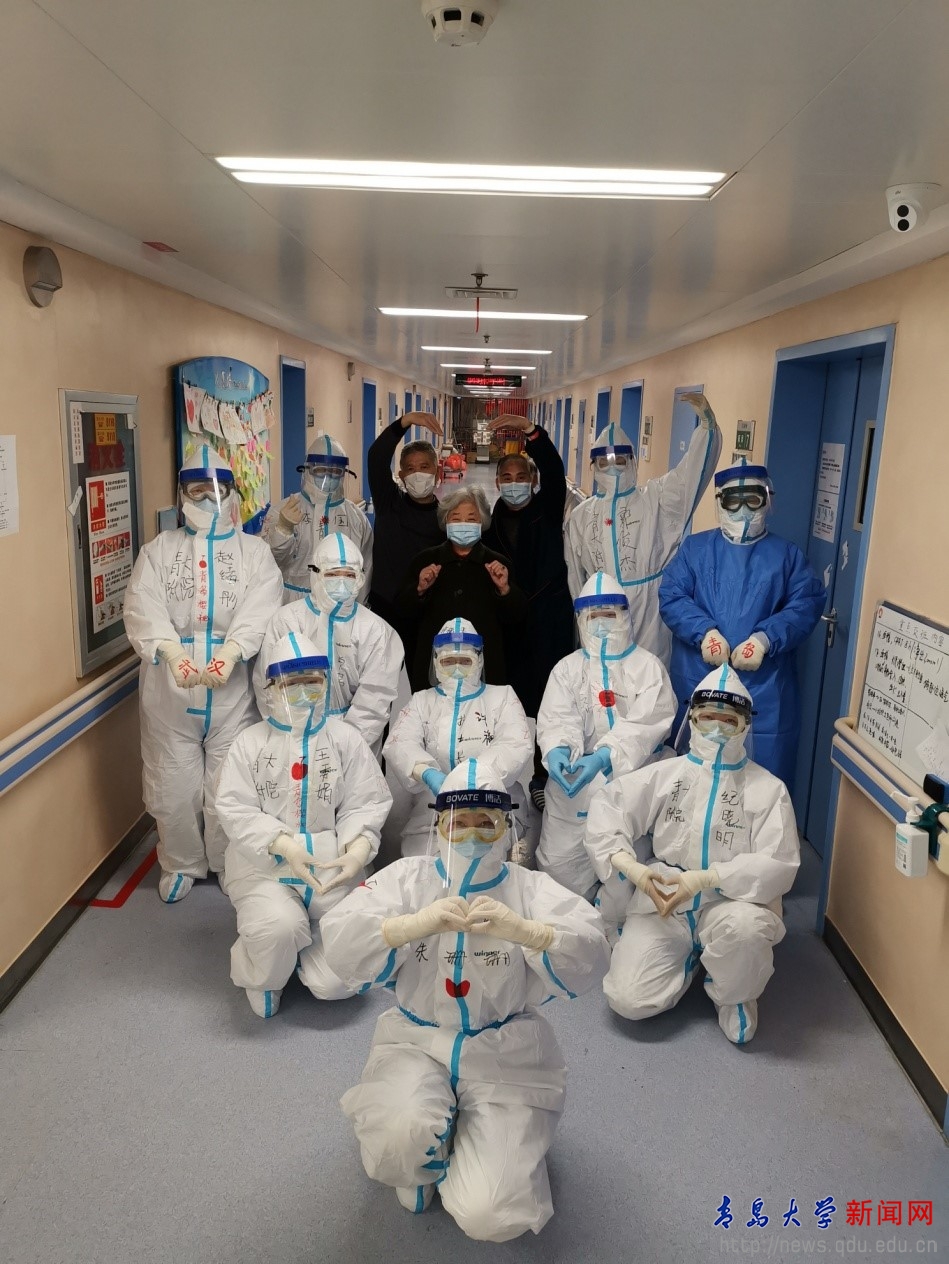 青島大學附屬醫院第三批援鄂醫療隊在元宵節當晚接到了上級馳援武漢的通知,132名醫療隊員在2小時內集結完畢,第二天出征抵達武漢,從組隊到接管同濟醫院光谷院區50張床的重癥病房,僅僅用了46小時。這支隊伍中女性醫護人員93人,占總人數的71%,是整個醫療隊的主力軍。在93名女性隊員中年齡最大的51歲、最小的僅22歲;有剛剛斷奶的兩個孩子的媽媽,亦有接力抗擊非典母親繼續抗疫的女兒;有軍功章里有她一半的軍嫂,亦有與愛人同時奮戰不同城市抗疫一線的妻子……在疫情驟然來臨時,她們毅然克服小家的困難,剪掉長發,勇敢逆行,用生命守護生命,構筑起疫情防控阻擊戰的堅強堡壘。孔心涓、魏麗麗、脫淼等醫護帶頭人沖在一線,率先垂范,帶領女醫護隊員以高超精準的專業素養以及男兒般的勇氣和膽魄,在抗疫前線的陣地上,書寫了白衣天使的巾幗大愛,為抗擊疫情的最后勝利交上了“打勝仗、零感染、零死亡”的完美答卷。