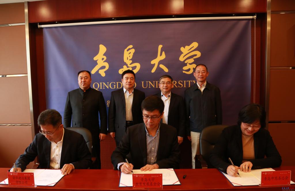 青島市慈善總會職能部門負責人,榮華建設集團高管,我校黨委辦公室、校長辦公室、創新創業學院、學生工作處、合作發展處(校友工作辦公室)、基建處等部門負責人參加儀式。