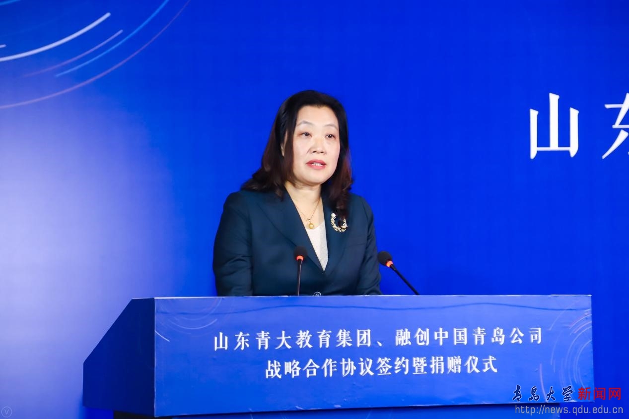 于惠娟在致辭中表示,融創青島與山東青大教育集團的合作將是一次推動城市教育發展的重要實踐,相信在各方的共同努力下,本次合作定能為青島海洋活力區教育高質量發展,貢獻新的更大的智慧和力量。