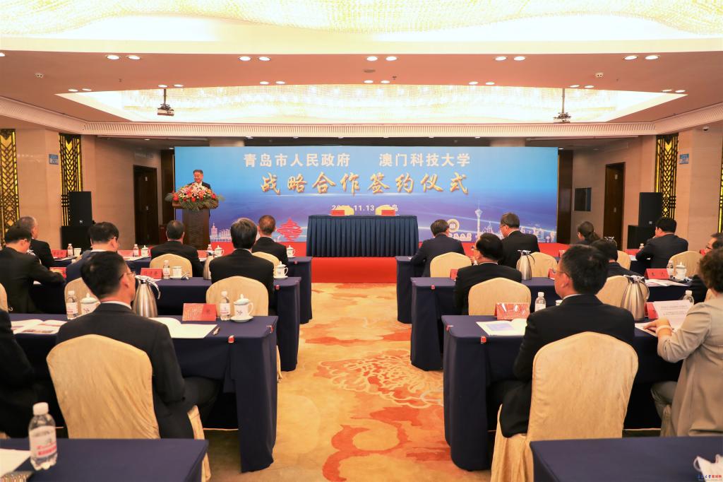 中央人民政府駐澳門特別行政區聯絡辦公室副主任姚堅、經濟部副部長朱宏,全國政協常委、澳門科技大學校董會主席、校監廖澤云,青島市委常委、副市長薛慶國,青島市委常委、統戰部部長王久軍,山東省委臺港澳工作辦公室副主任尹曉民,青島大學校長夏東偉等出席簽約儀式并見證簽約。