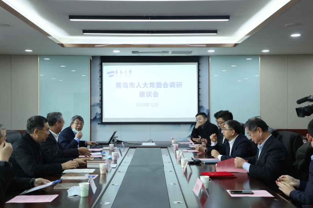 新聞網訊 12月24日上午,青島市人大常委會主任宋遠方一行到我校金家嶺校區調研。校黨委書記胡金焱、校長夏東偉出席座談會,校黨委常委、副校長于紅波主持會議。