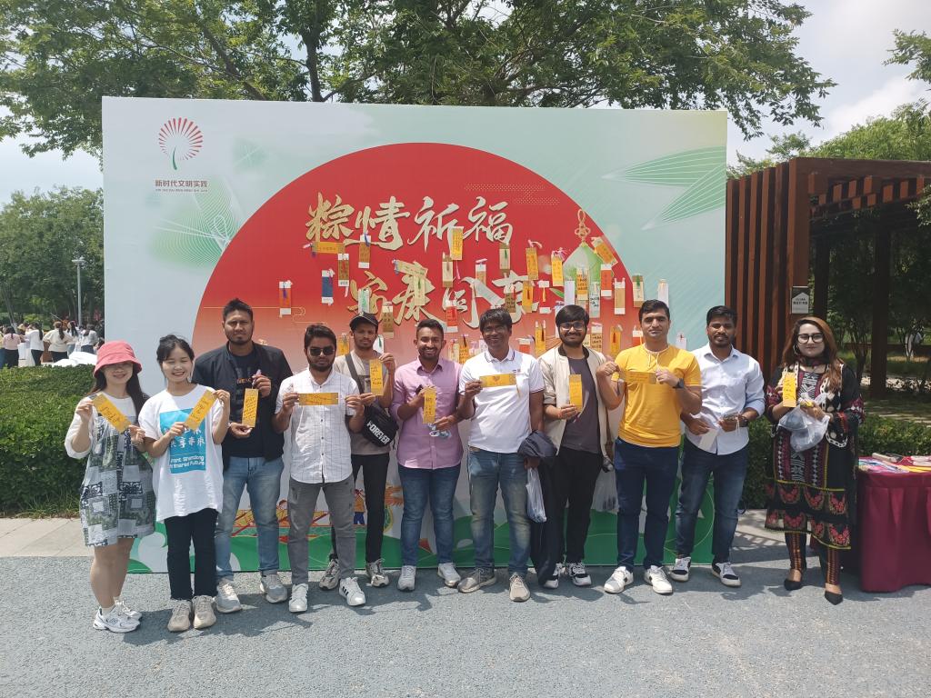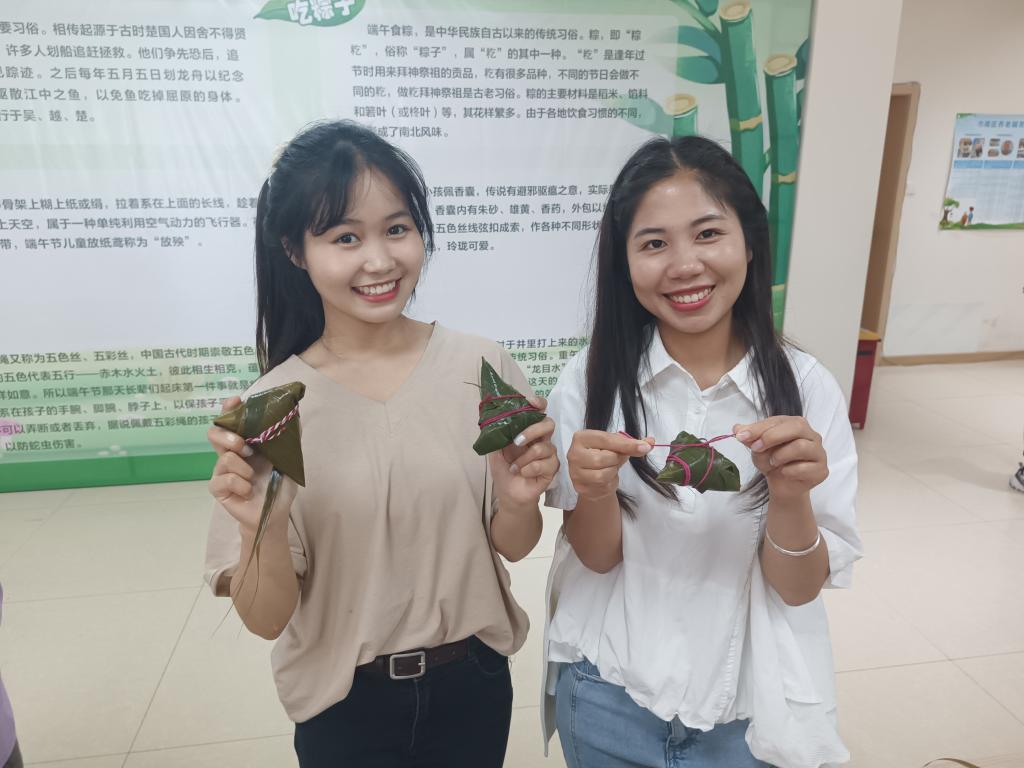 6月6日下午,我校12名碩博留學生參加了由市南區總工會組織的端午“粽”總動員,有“艾”又有情活動,留學生們與企事業單位職工代表一起動手包粽子、扎五彩繩、做香囊、射五毒、趣投壺、捏泥人,感受端午佳節習俗,領略傳統文化魅力。