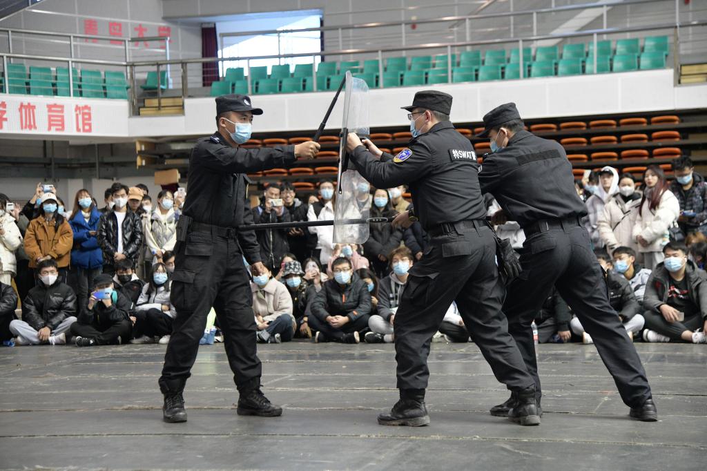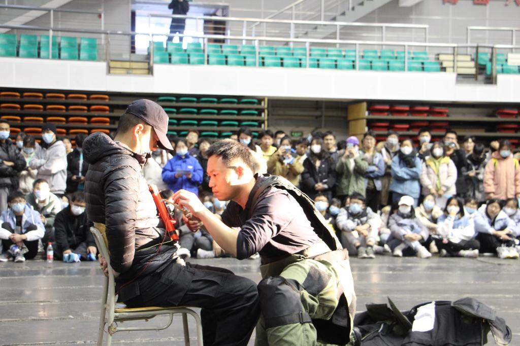 新聞網(wǎng)訊 為進(jìn)一步落實(shí)黨史學(xué)習(xí)教育“我為師生辦實(shí)事”活動(dòng),健全學(xué)校安全應(yīng)急聯(lián)動(dòng)機(jī)制,增強(qiáng)學(xué)校應(yīng)對(duì)處置各類(lèi)突發(fā)事件的指揮決策和統(tǒng)籌協(xié)調(diào)能力,普及安全避險(xiǎn)知識(shí),提高學(xué)生和教職工自救互救能力,11月8日下午,由黨委宣傳部、黨委學(xué)生工作部、黨委保衛(wèi)部聯(lián)合青島市公安局、嶗山公安分局在校體育館組織開(kāi)展校園反恐、反詐、網(wǎng)絡(luò)安全教育培訓(xùn)暨校園反恐應(yīng)急處置演練。