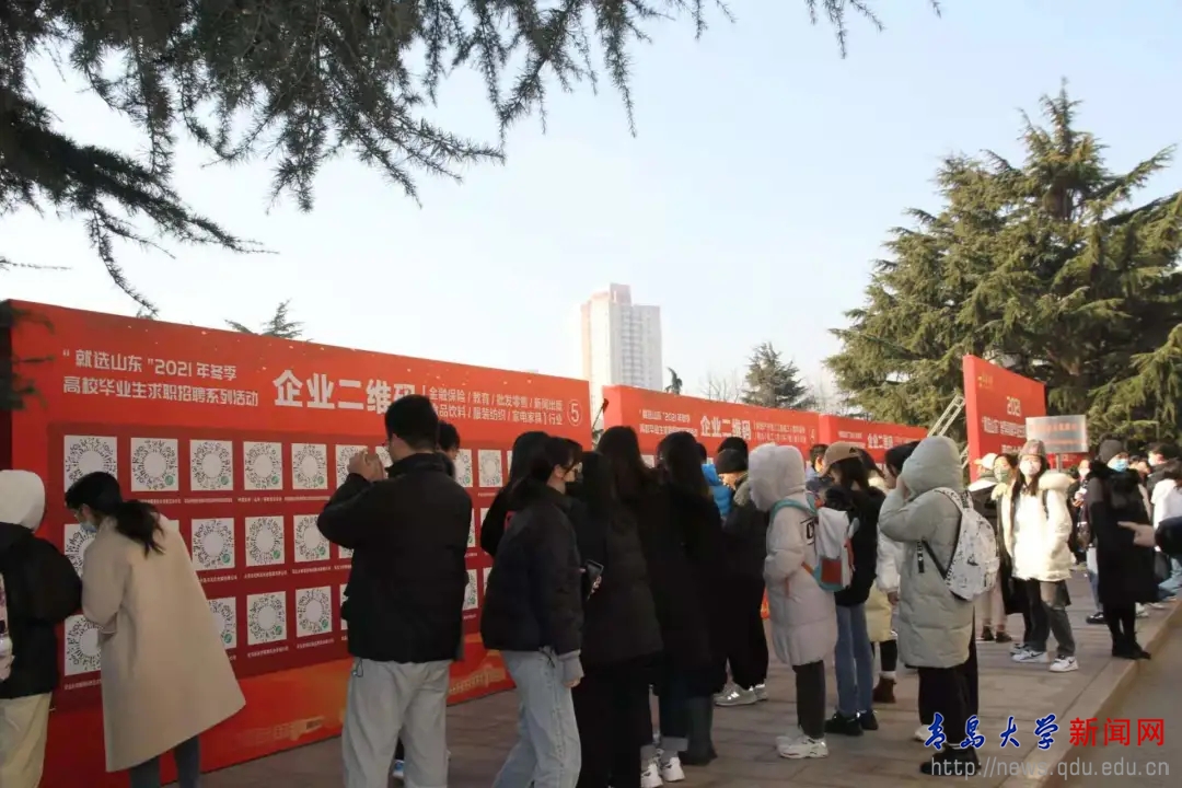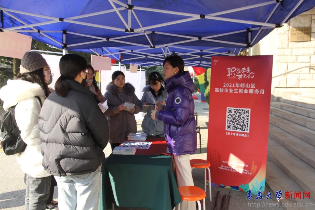 新聞網(wǎng)訊  近日,由山東省教育廳、山東省人力資源和社會保障廳指導(dǎo),青島市人力資源和社會保障局、青島大學(xué)共同主辦的“就選山東”2021年冬季求職招聘系列活動青島大學(xué)專場暨第二批就業(yè)育人雙百基地企業(yè)“碼上”云招聘在青島大學(xué)浮山校區(qū)博文樓前廣場順利舉辦。此次招聘會是我校“雙百驅(qū)動 精準(zhǔn)就業(yè)”2022屆畢業(yè)生“校園招聘月”系列活動之一,設(shè)置33家“雙百”基地企業(yè)、230家企業(yè)HR現(xiàn)場直播視頻互動,匯集15000余個就業(yè)崗位需求。企業(yè)共收取簡歷2000余份,視頻互動交流400余人。