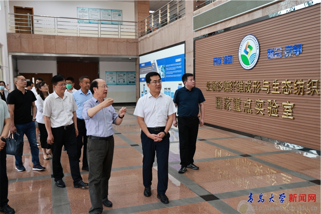 會(huì)后,江峰一行參觀了生物多糖纖維成形與生態(tài)紡織國(guó)家重點(diǎn)實(shí)驗(yàn)室和分析測(cè)試中心。